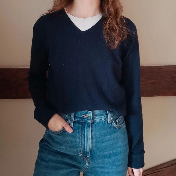 💐 Réductions sur les lots 💐 2 articles : -5% 3 & 4 articles : -10% 5 articles et plus : -15% ⚠️ Pas d'envoi Vinted go, merci Étant une entreprise déclarée payant des charges, merci de respecter mon travail en ne le bradant pas 🙏 ✨ Pull basique à col V proche du corps bleu marine Made in Hawick, Scotland 100% pur cachemire Un petit trou a été reprisé sur le bas, sur devant à gauche le long de la couture latérale et à 10cm du bas du pull ; très peu visible, état impeccable par ailleurs (voir la dernière photo) Taille 36, je le porte sur un 36 sur les photos et mesure 1m61 📏 Dimensions à plat : carrure 38cm, largeur poitrine 45cm, longueur 54cm, longueur manches 64cm (j'ai dû les retrousser sur les photos) #desibellesfripes36