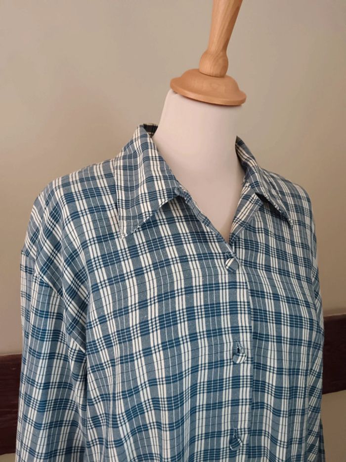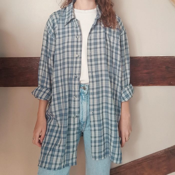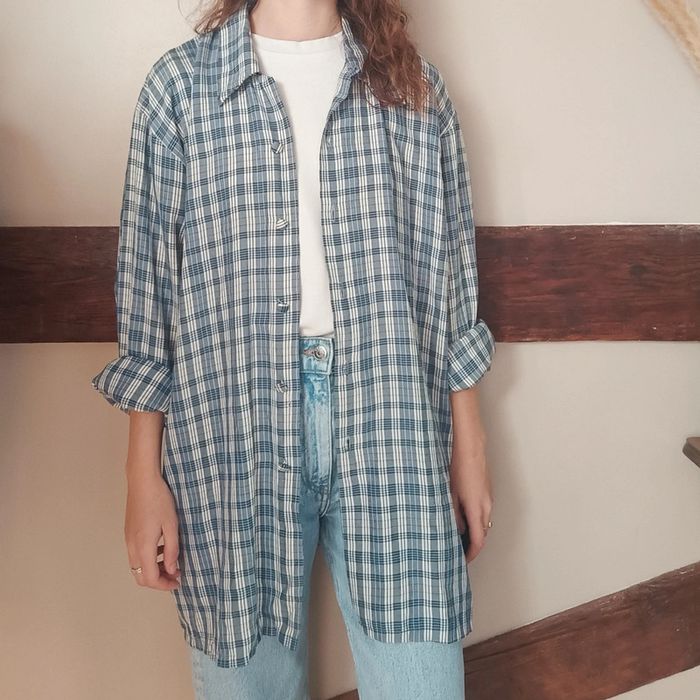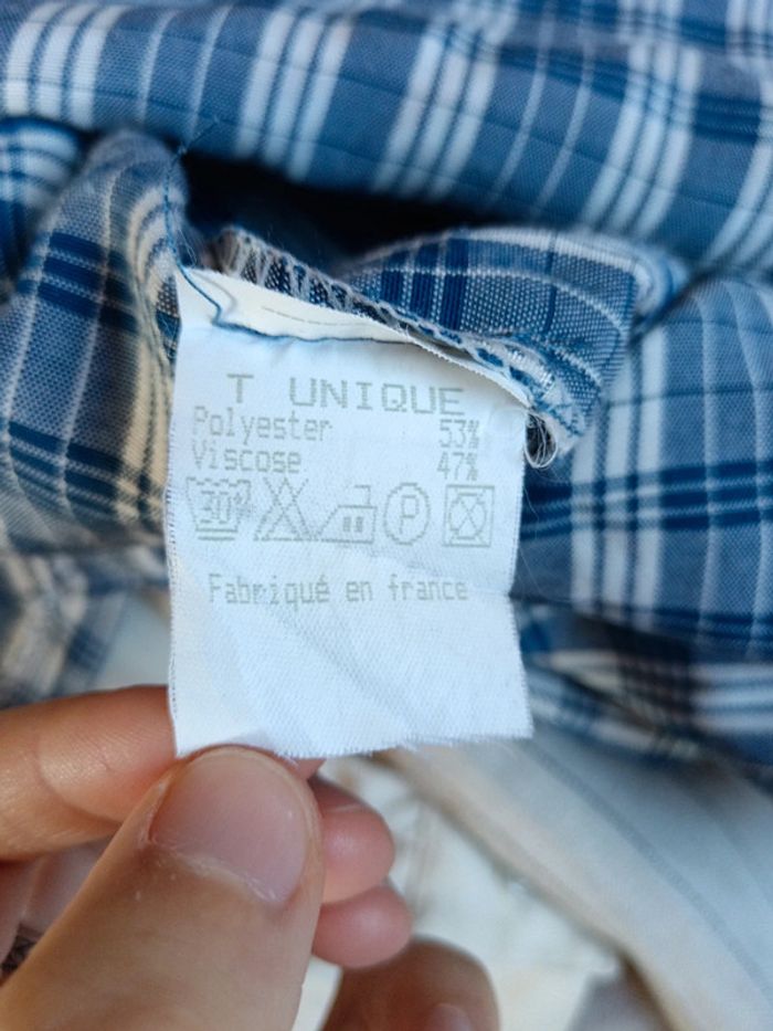Pas d'envoi Vinted go, merci - ✨ Chemise légère à bleue à carreaux crème, coupe longue, boutons tissu ton sur ton Al'Son Paris, fabriqué en France 53% polyester 46% viscose État impeccable Taille unique idéale portée oversize pour les taille 42 et 44, ok jusqu'au 46, je la porte sur un 36 sur les photos et mesure 1m61 📏 Dimensions à plat : carrure 52cm, largeur poitrine 57cm, longueur 79cm, manches 55cm ❗ Étant une entreprise déclarée payant des charges, merci d'éviter les négociations de prix dignes d'un marché aux puces et de respecter mon travail en ne le bradant pas 🙏 #desibellesfripes42 #dsbfbraderie