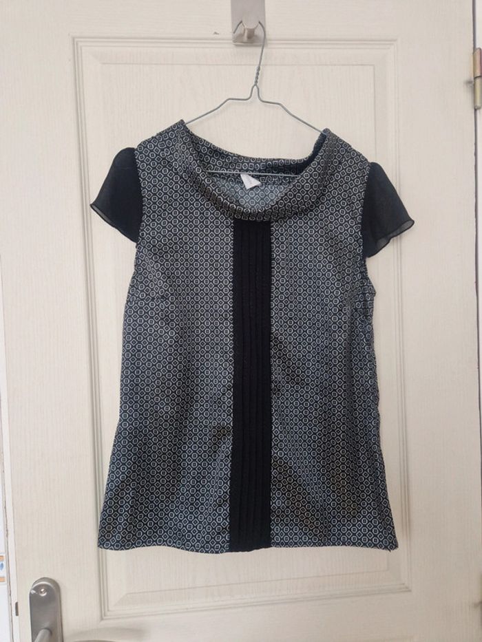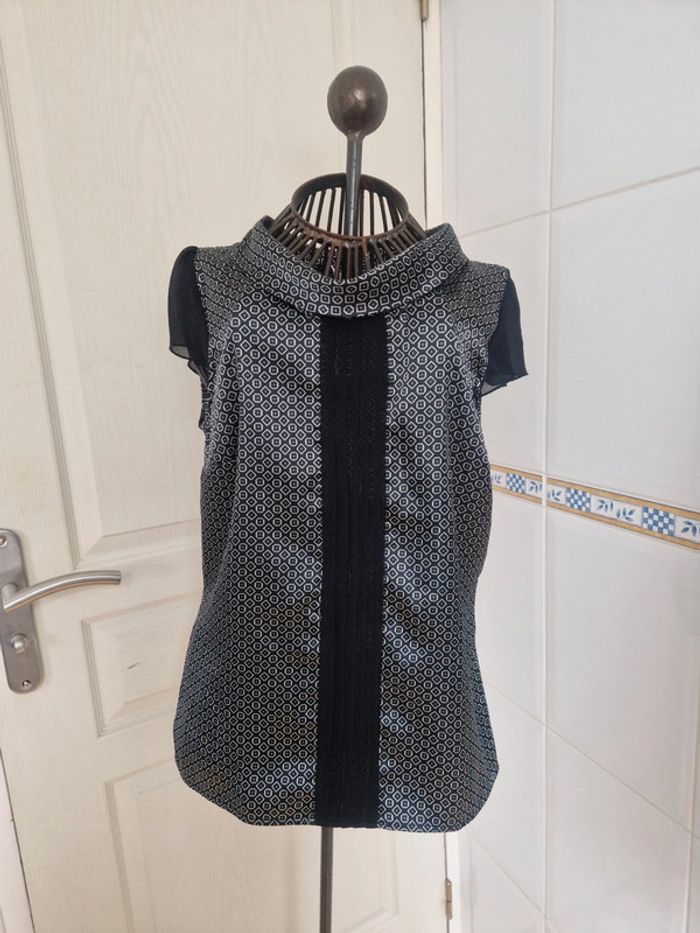 Jolie blouse à manche courte motifs noir et blanc femme camaïeu taille M/38