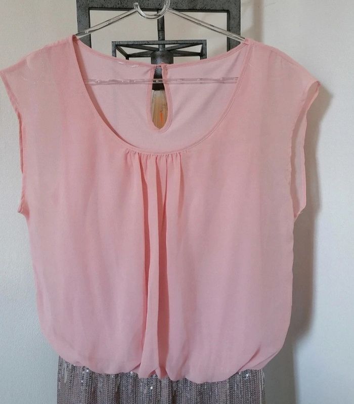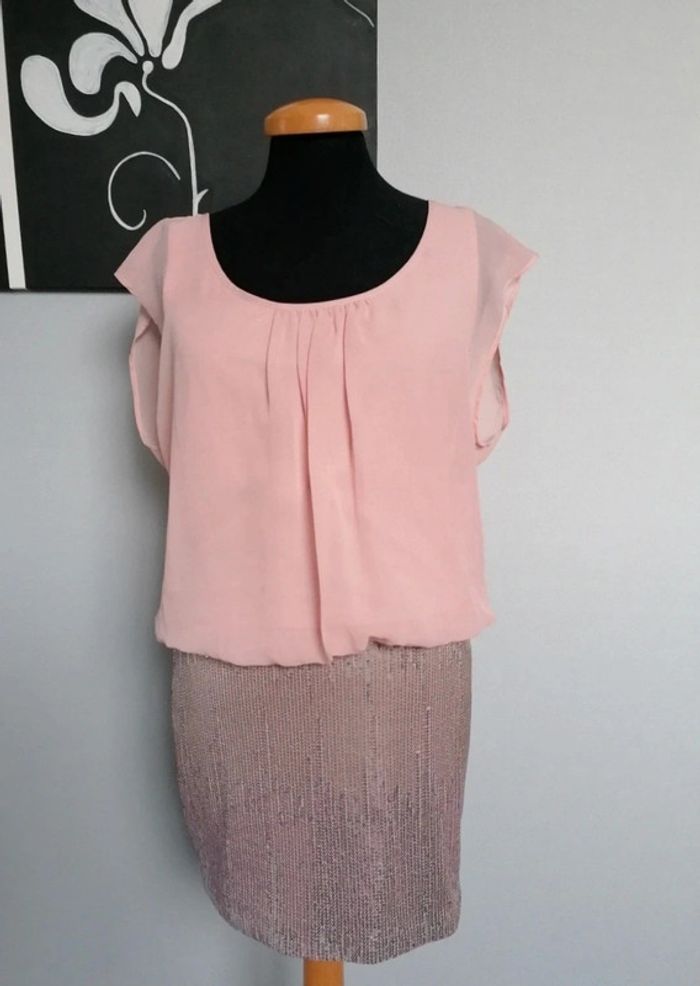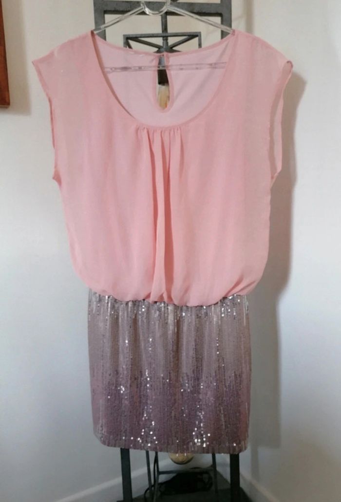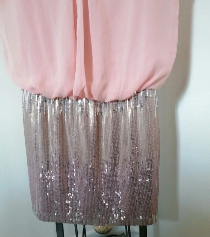 Très jolie robe Haut fluide doublé Bas sequins En excellent état Plus les étiquettes