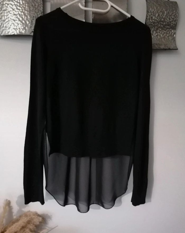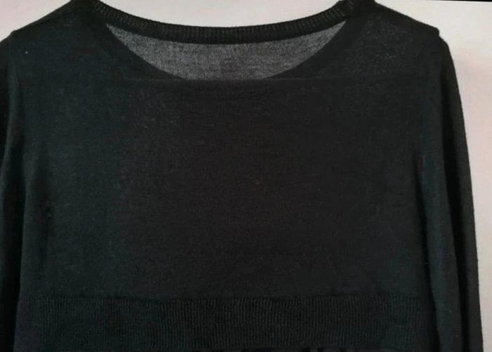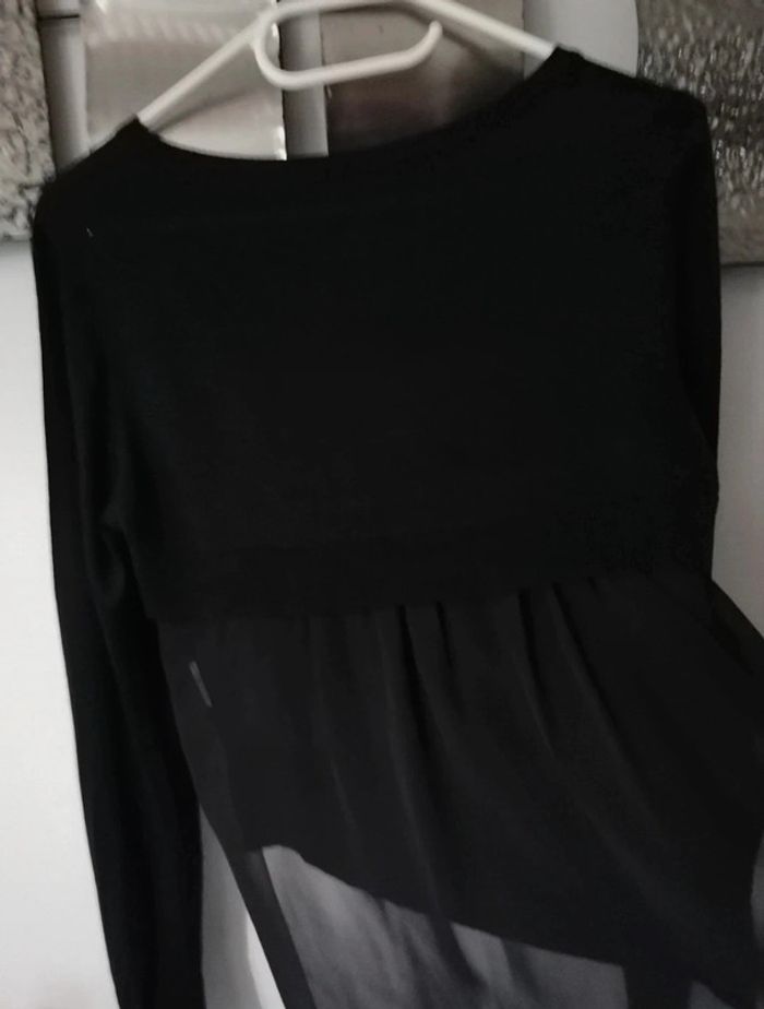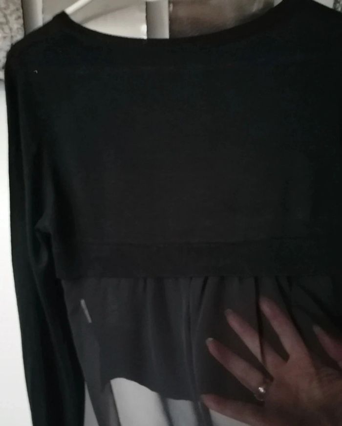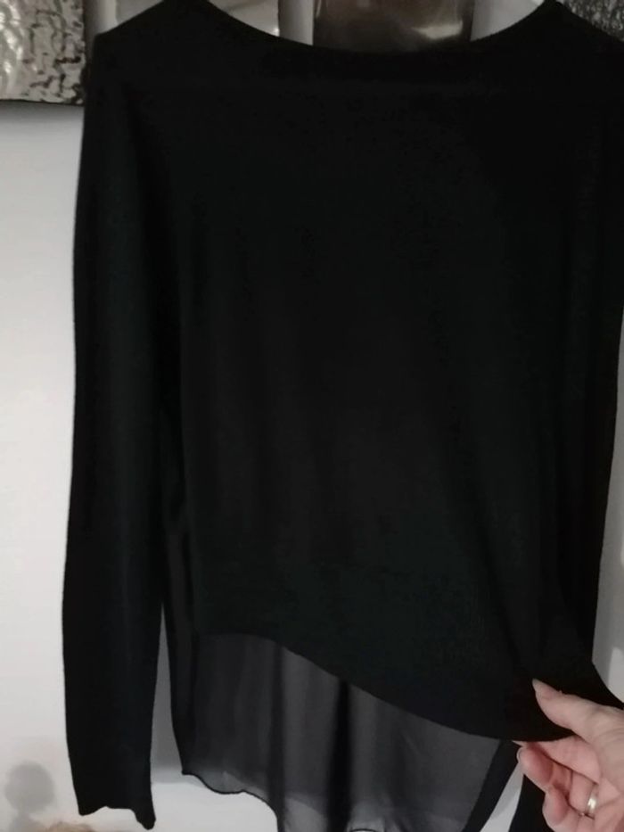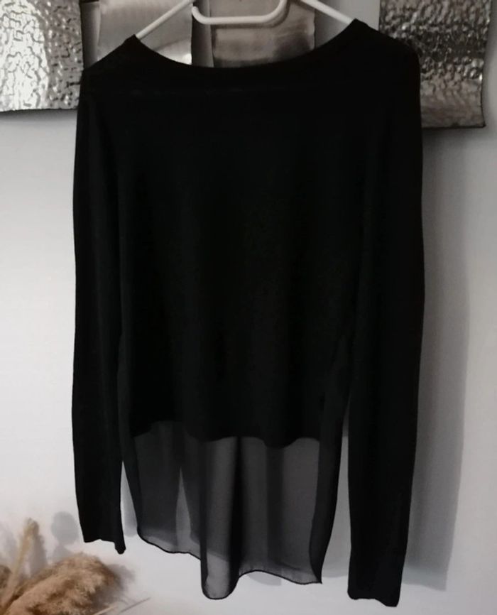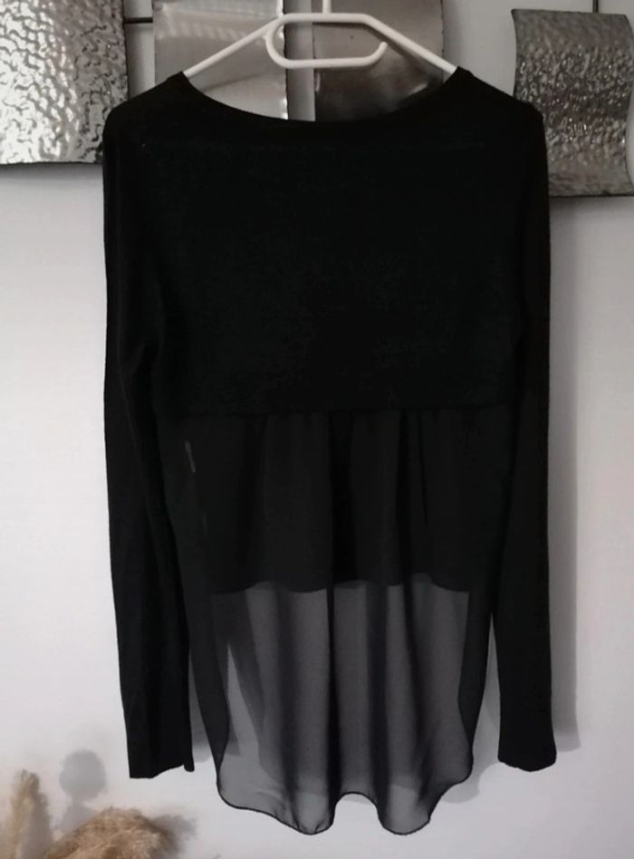 Pull léger noir Devant pull court classique Derrière le pull est beaucoup plus court et se termine par un joli voile noir Plus les étiquettes En parfait état