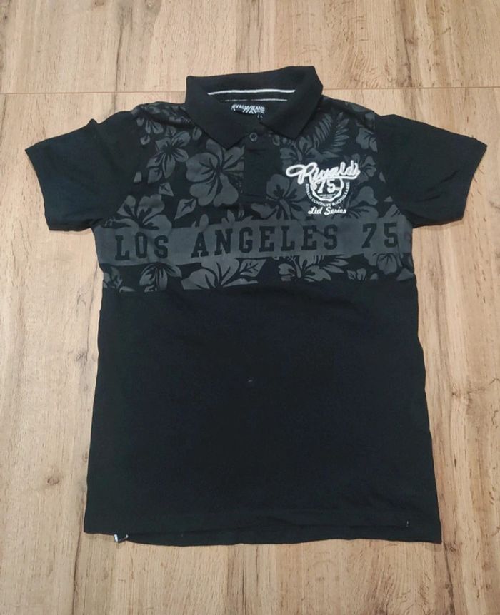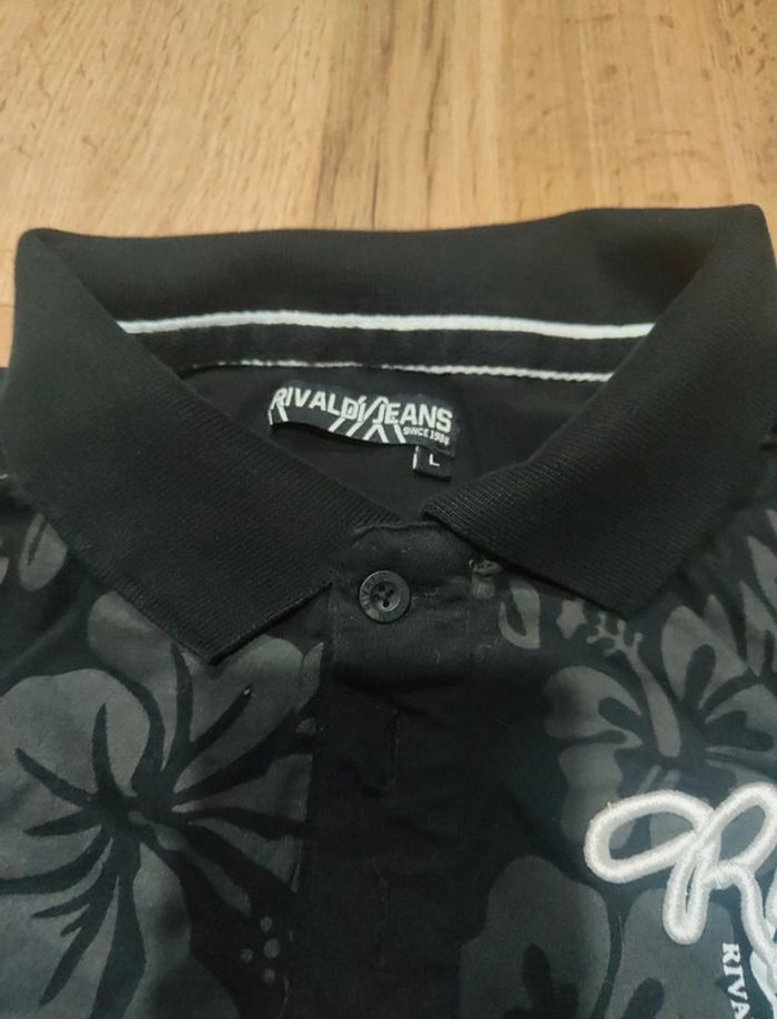 Polo Rivaldi homme taille L noir fleurs grises manches courtes