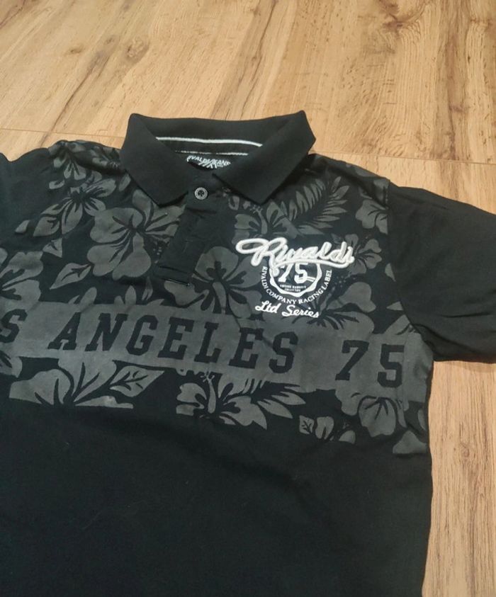 Polo Rivaldi homme taille L noir fleurs grises manches courtes - photo numéro 1