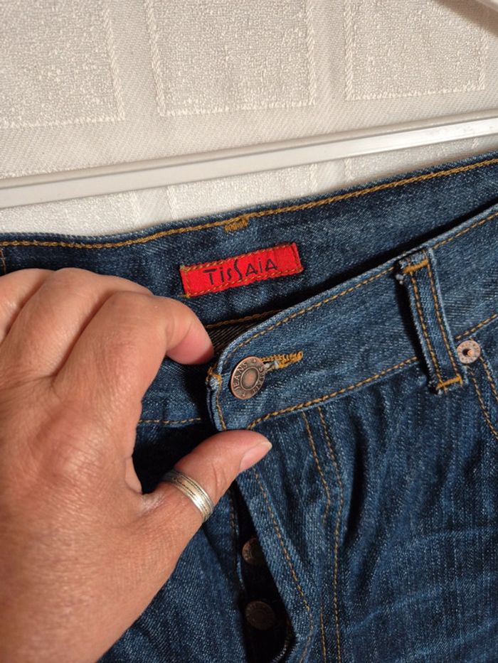 ⬇️mes autres annonces pour femme en taille 44 👉 #cg89femme44 un jean bleu foncé avec boutons pour fermeture éclair. Il mesure 72 cm à l'entrejambe, 23 cm en bas et 44 cm de taille. très bon état - taille 44 - marque tissaia #jean #taille44 #tissaia #jeandroit