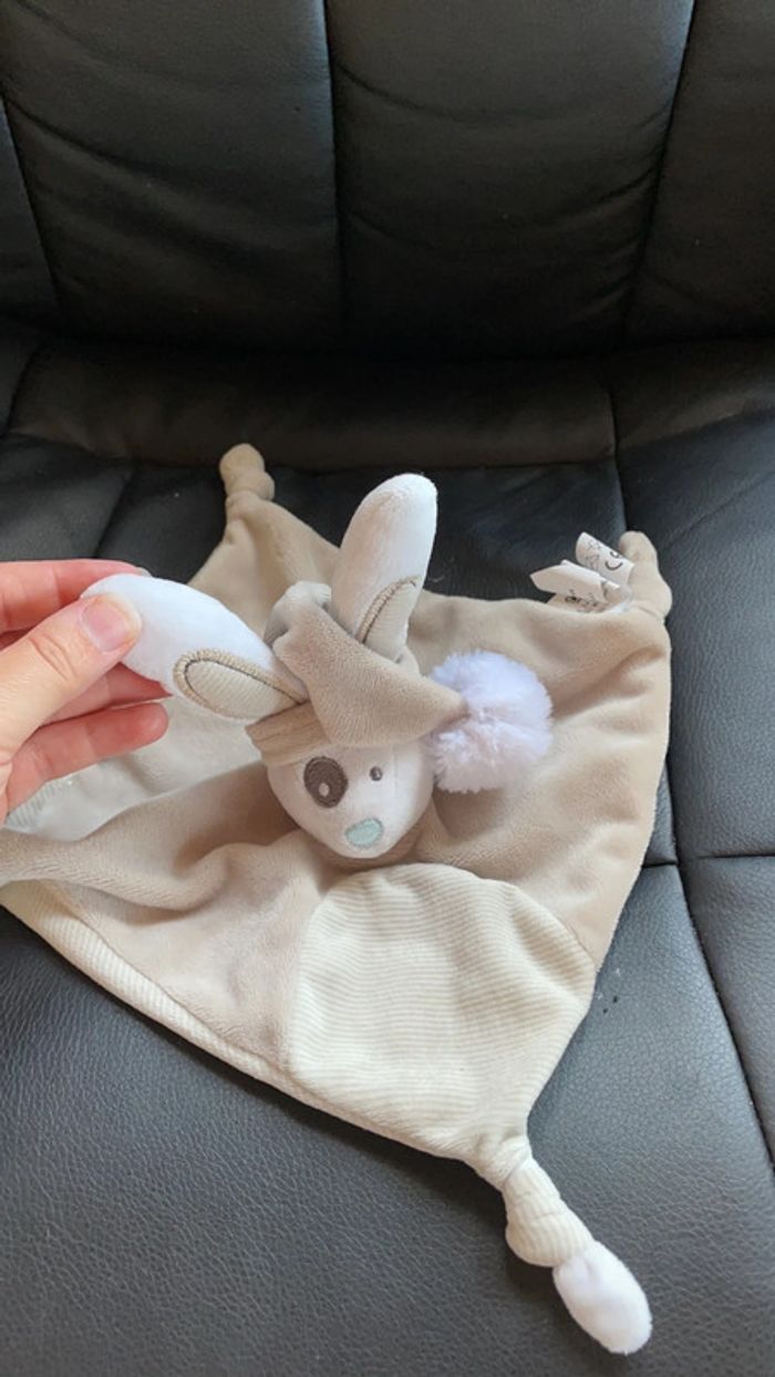 Doudou lapin blanc crème et gris clair - photo numéro 3