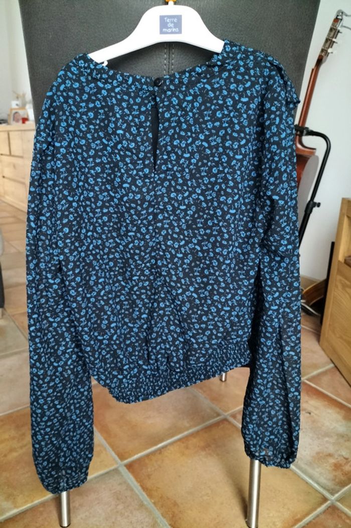 #alnimacle_fille_XS Chemise fluide noire et bleu à fleurs Taille XS Marque Kiabi Très bon état