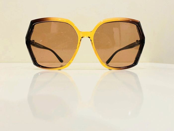 Lunette de soleil femme marron dégradés et dorée taille moyenne - photo numéro 1