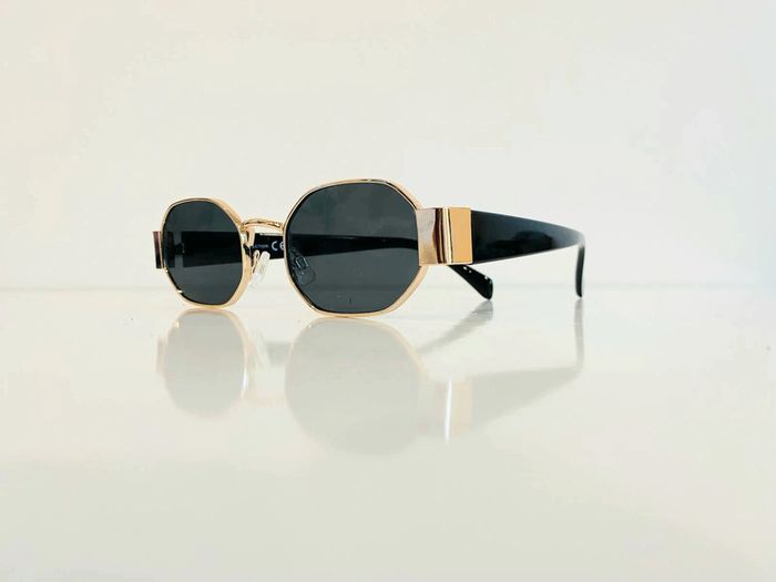 Lunette de soleil hexagonale dorée Mixte uvprotection catégorie 3 - photo numéro 7