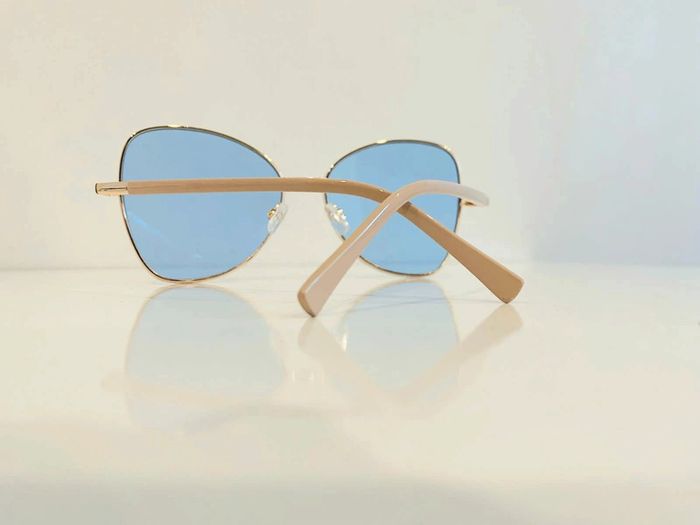 Lunette de soleil femme papillon d'or verres bleus uvprotection taille moyenne - photo numéro 2