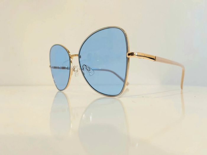 Lunette de soleil femme papillon d'or verres bleus uvprotection taille moyenne