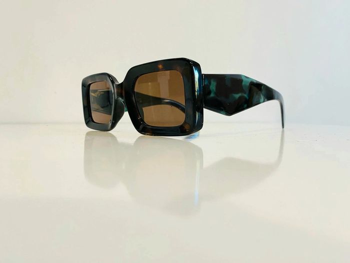 Lunette de soleil mixte rectangulaire façade marron écaille UV protection catégorie 3 - photo numéro 2