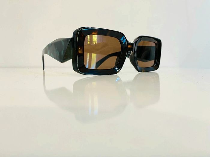 Lunette de soleil mixte rectangulaire façade marron écaille UV protection catégorie 3 - photo numéro 6