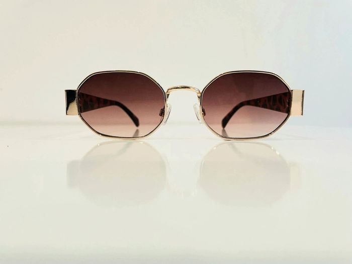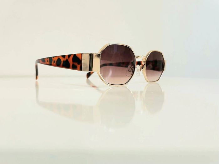 Lunette de soleil mixte hexagonale dorée verres dégradés bras marron léopard uvprotection cat 3 - photo numéro 1
