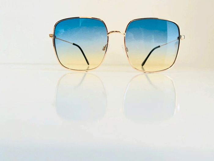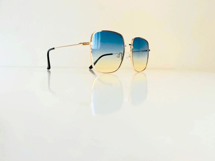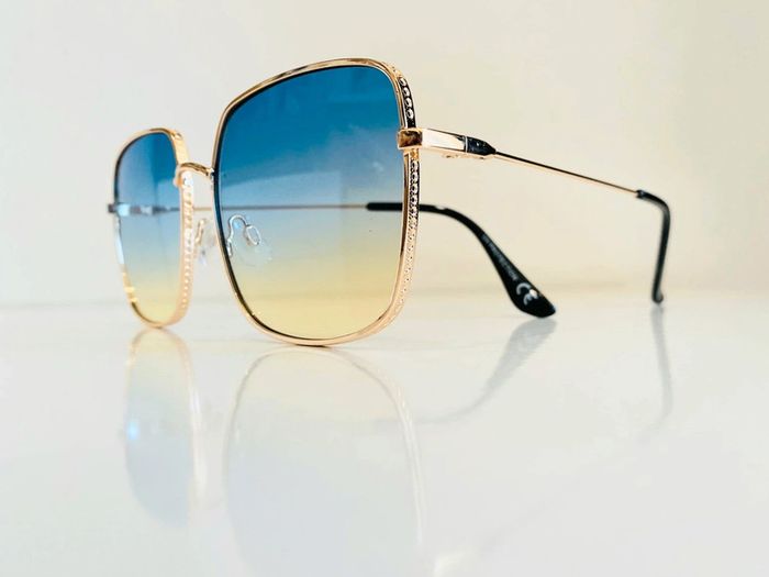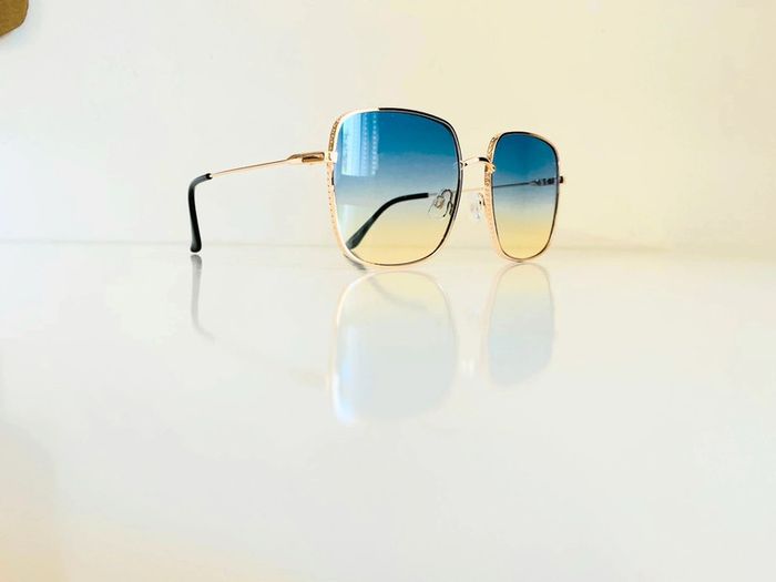 Lunette de soleil femme carrée dorée verres bleus dégradés uv protection catégorie 2 - photo numéro 1