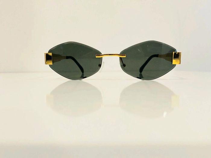 Lunette de soleil mixte losange verres noirs bras dorés UV protection catégorie 3 - photo numéro 1