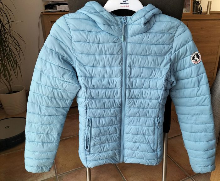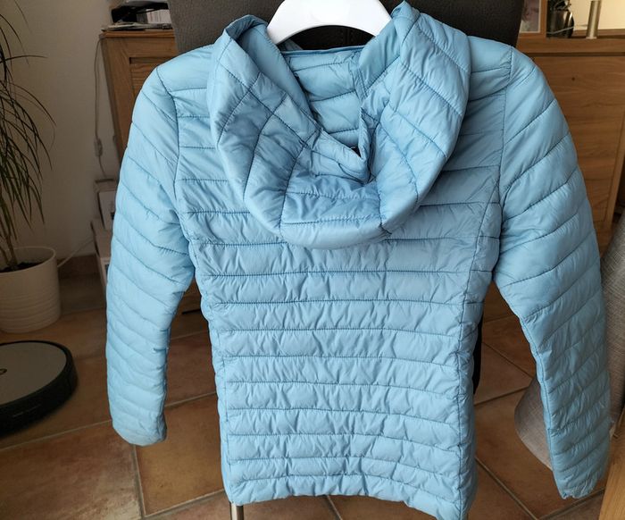#alnimacle_fille_XS Manteau bleu marque Jennyfer taille XS bon état mais trous au niveau d'une manche et bas des manches un peu gris malgré les lavages en raison de sa clarté