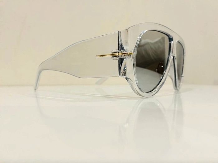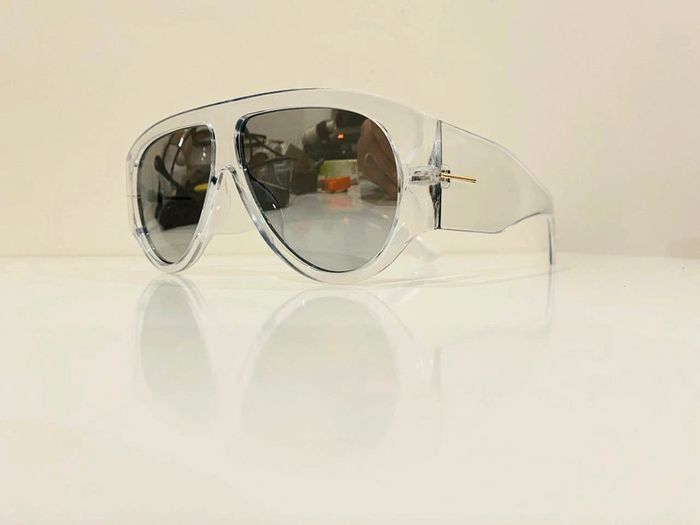 Lunette de soleil mixte transparente bras large verres gris miroités uvprotection catégorie 3