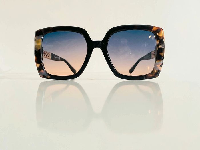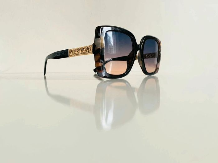 Lunette de soleil femme noire léopard bras en chaîne dorée verres dégradés