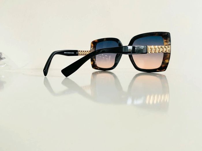 Lunette de soleil femme noire léopard bras en chaîne dorée verres dégradés - photo numéro 1