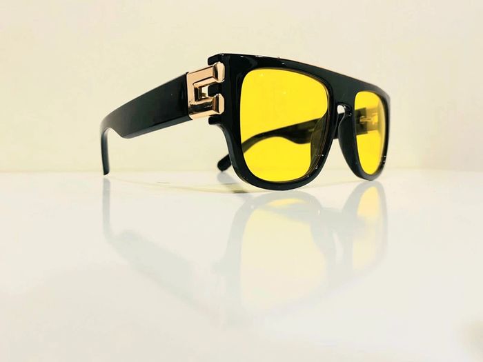 Lunette de soleil mixte noire verres jaunes taille moyenne - photo numéro 1