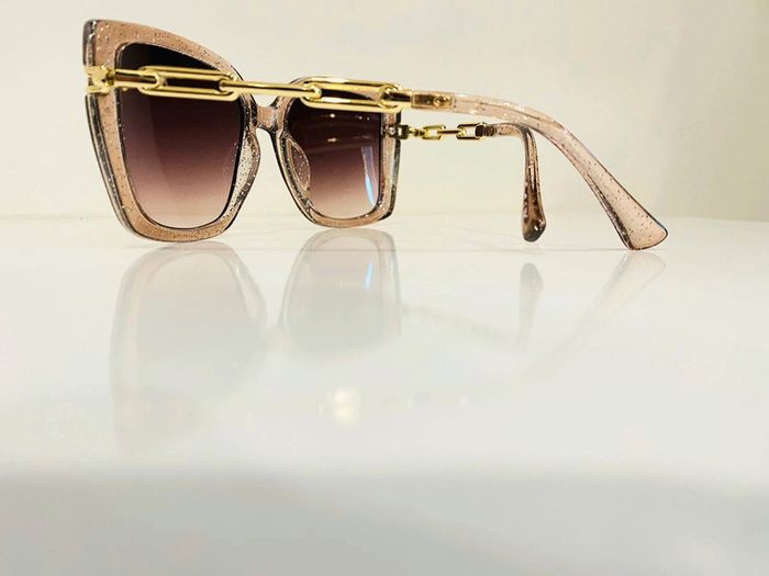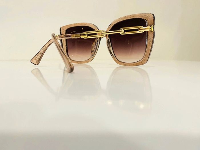 Lunette de soleil femme beige transparente bras en chaîne dorée UV protection catégorie 3 - photo numéro 3