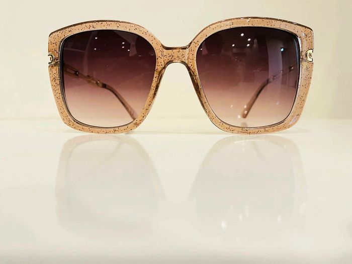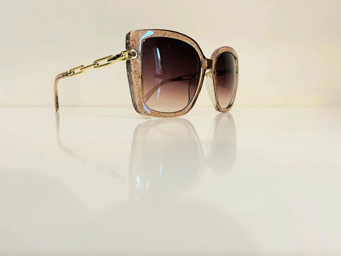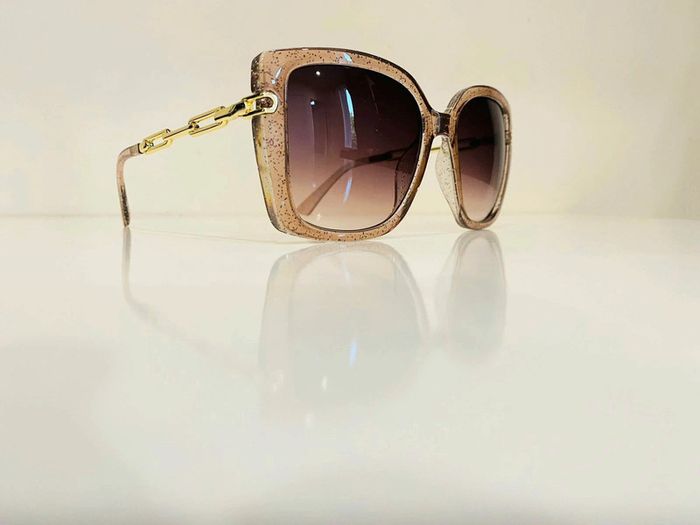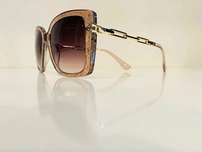 Lunette de soleil femme beige transparente bras en chaîne dorée UV protection catégorie 3 - photo numéro 1