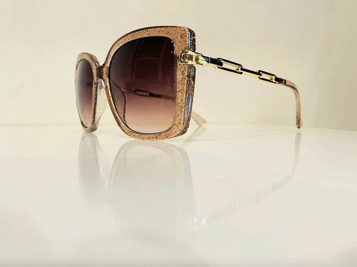 Lunette de soleil femme beige transparente bras en chaîne dorée UV protection catégorie 3 - photo numéro 8
