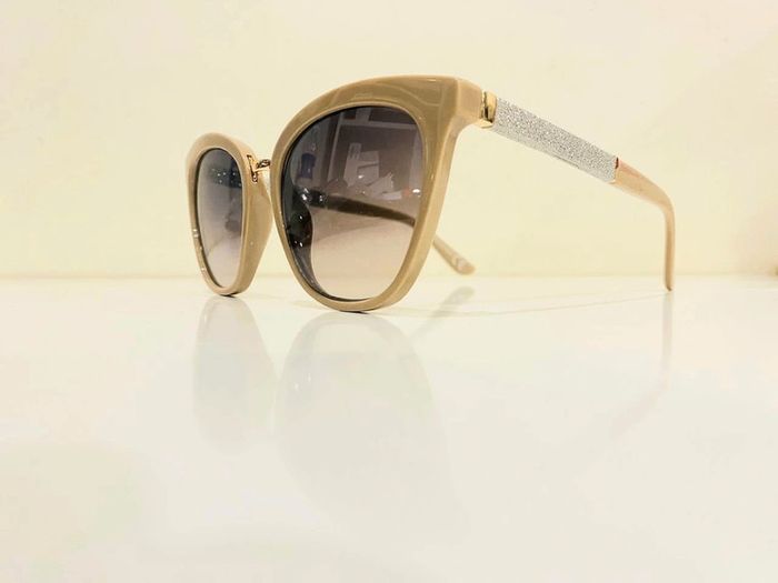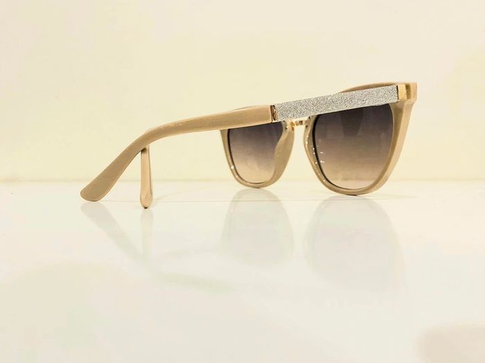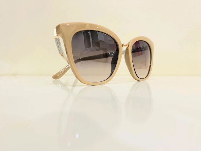 Lunette de soleil femme beige,dorée et argentée verres dégradés taille moyenne