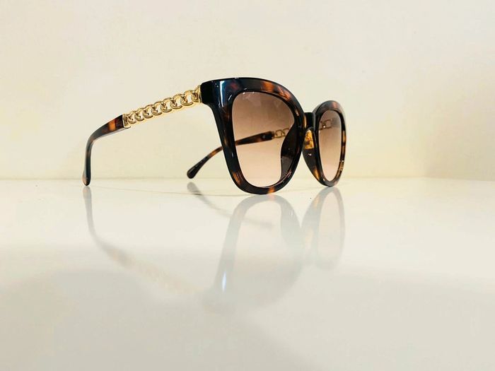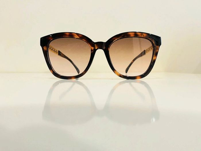 Lunette de soleil femme marron écaille verres dégradés bras en chaîne dorée taille moyenne - photo numéro 1