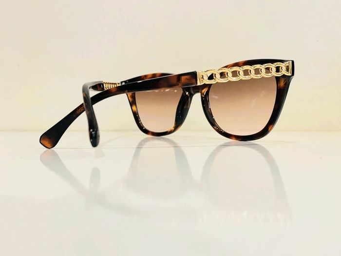 Lunette de soleil femme marron écaille verres dégradés bras en chaîne dorée taille moyenne