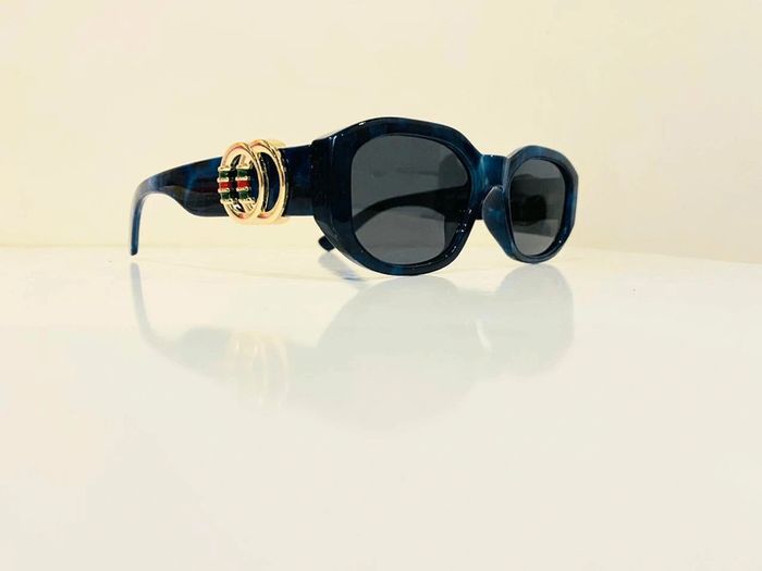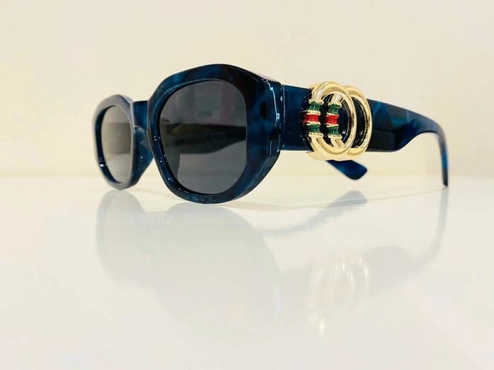 Lunette de soleil femme bleu marine et dorée Taille moyenne uvprotection catégorie 3 - photo numéro 1