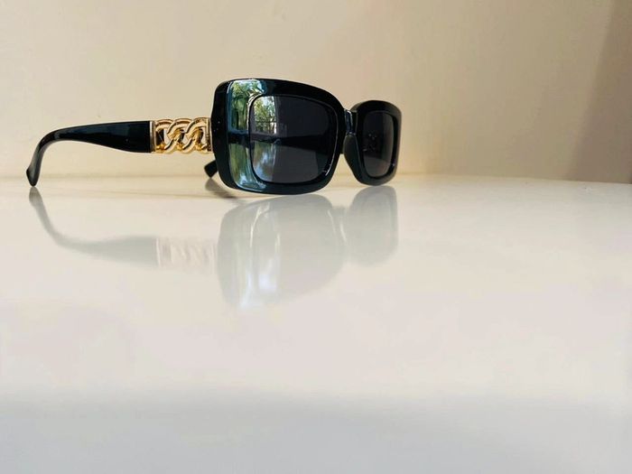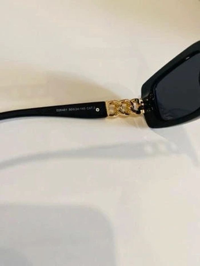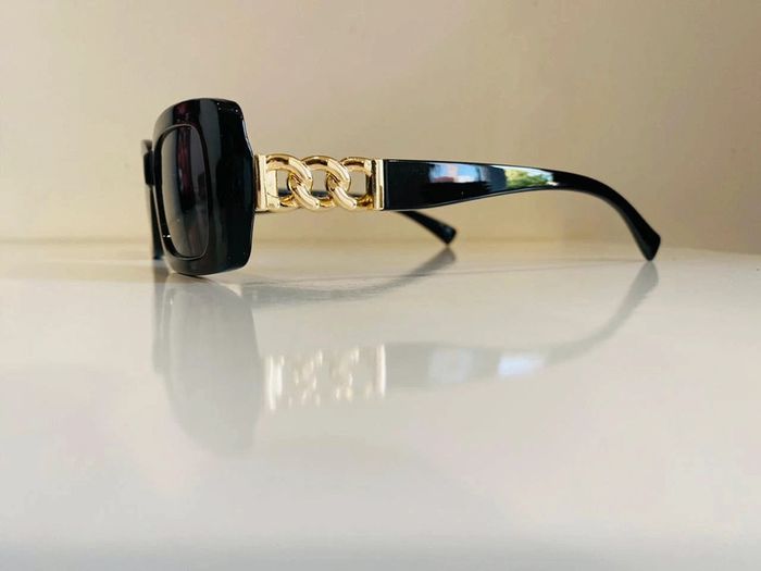 Lunette de soleil noire bras en chaîne dorée UV protection catégorie 3 - photo numéro 6