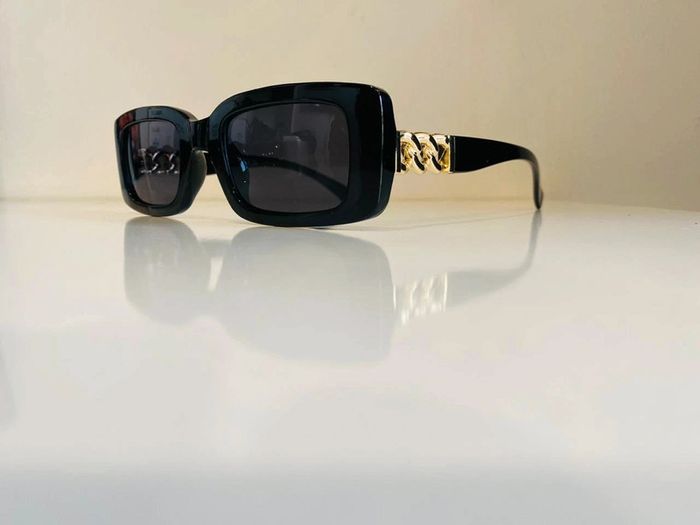 Lunette de soleil noire bras en chaîne dorée UV protection catégorie 3 - photo numéro 1