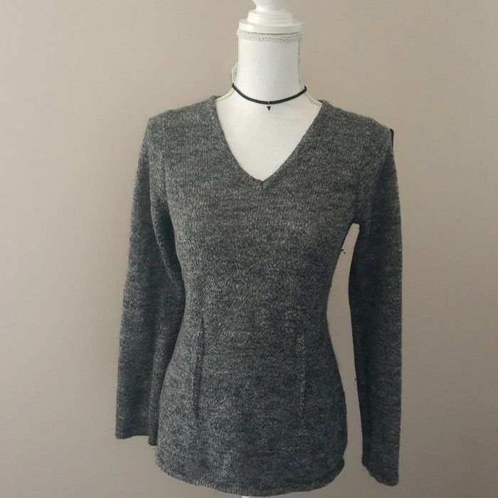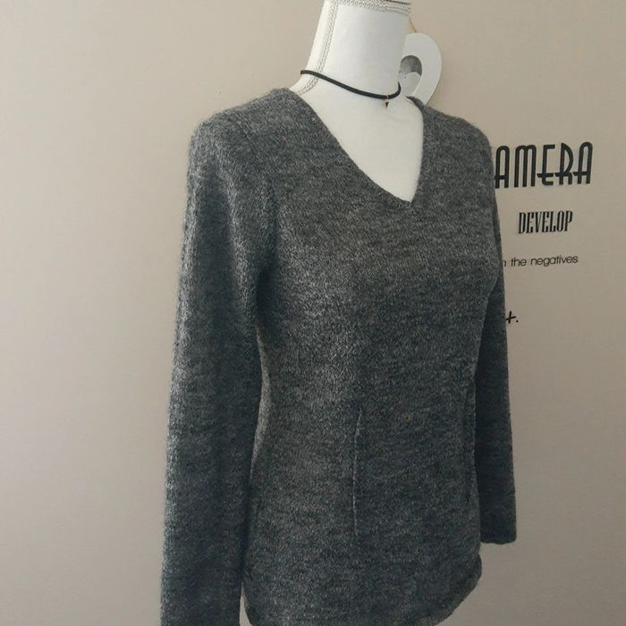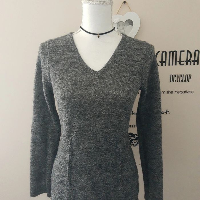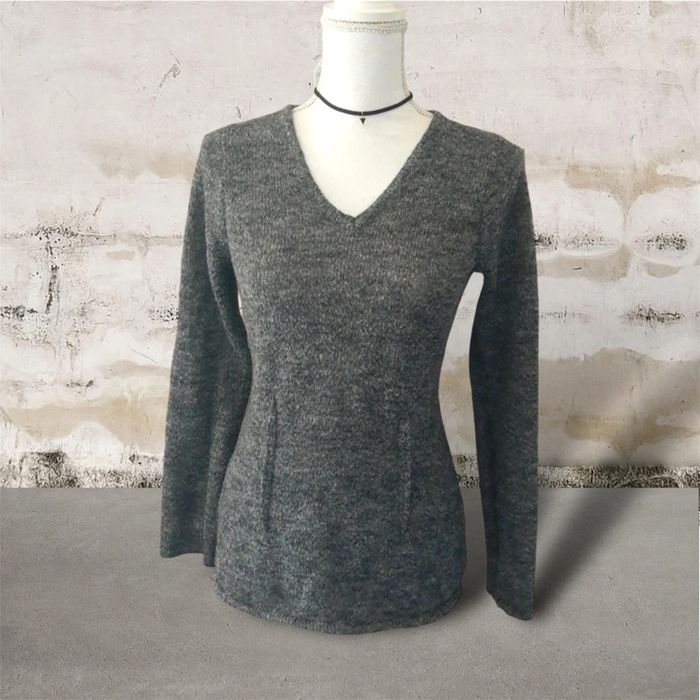 Joli pull gris foncé de qualité , mailles fines , col V , manches longues.
