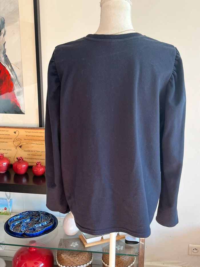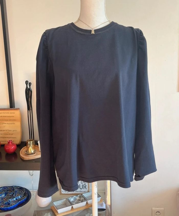 Pull sweat femme bleu marine col rond épaules froncées taille XL - photo numéro 6