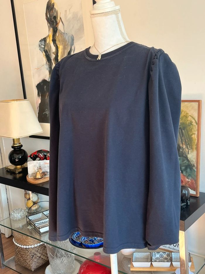 Pull sweat femme bleu marine col rond épaules froncées taille XL