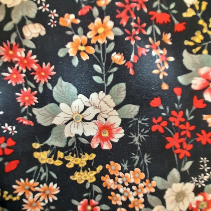 Imprimé fleuri à dominante rouge ,orange , multicolore
