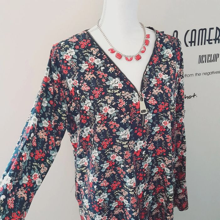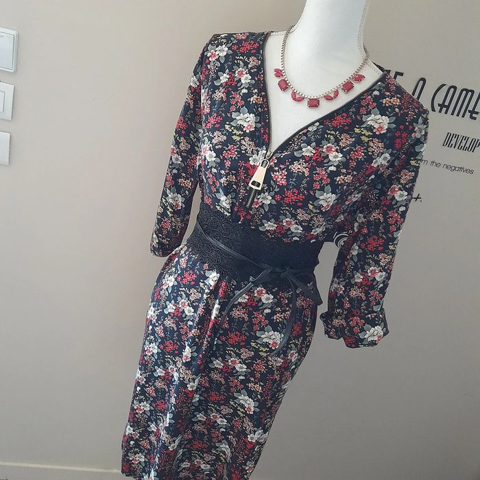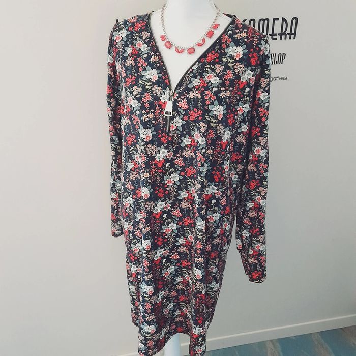 Jolie robe d'été mi longue, chic, fleurie à manches longues relevables. Très légère et agréable à porter(viscose) .