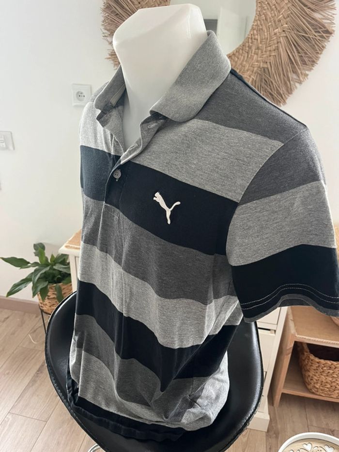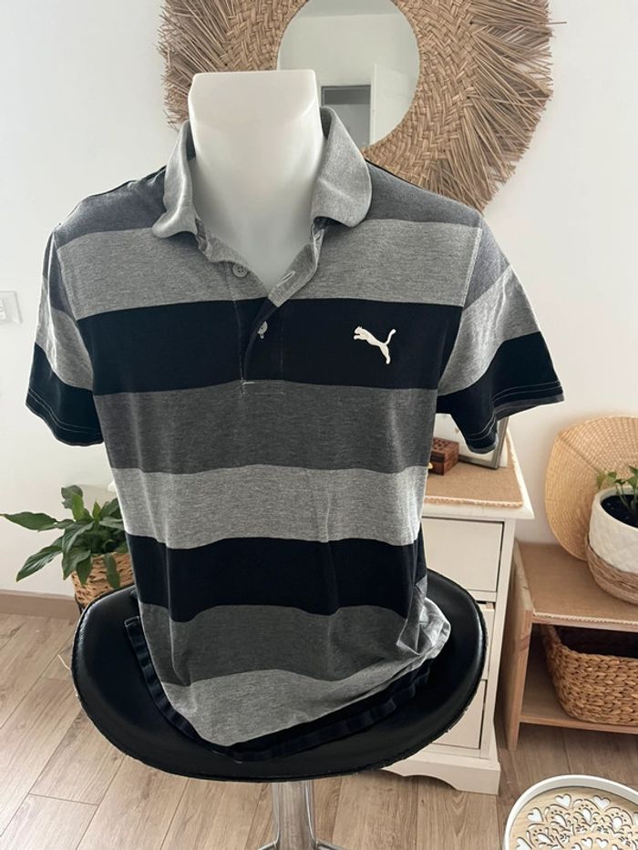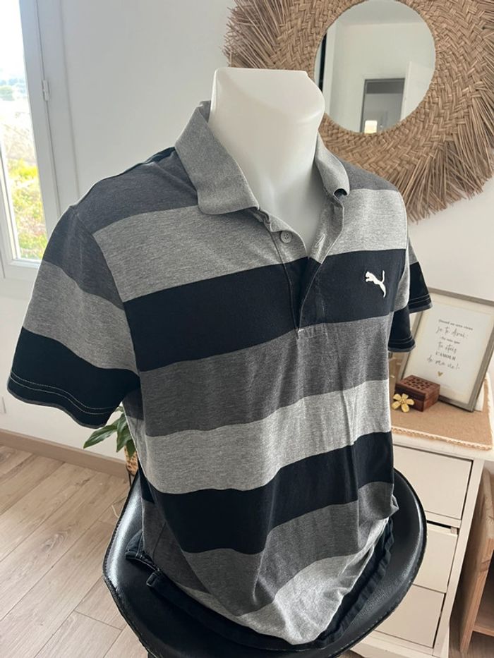 Polo homme rayé gris Puma Vintage taille M - photo numéro 1