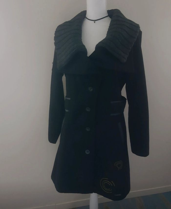 Magnifique manteau laine noir Desigual taille 46 - photo numéro 1
