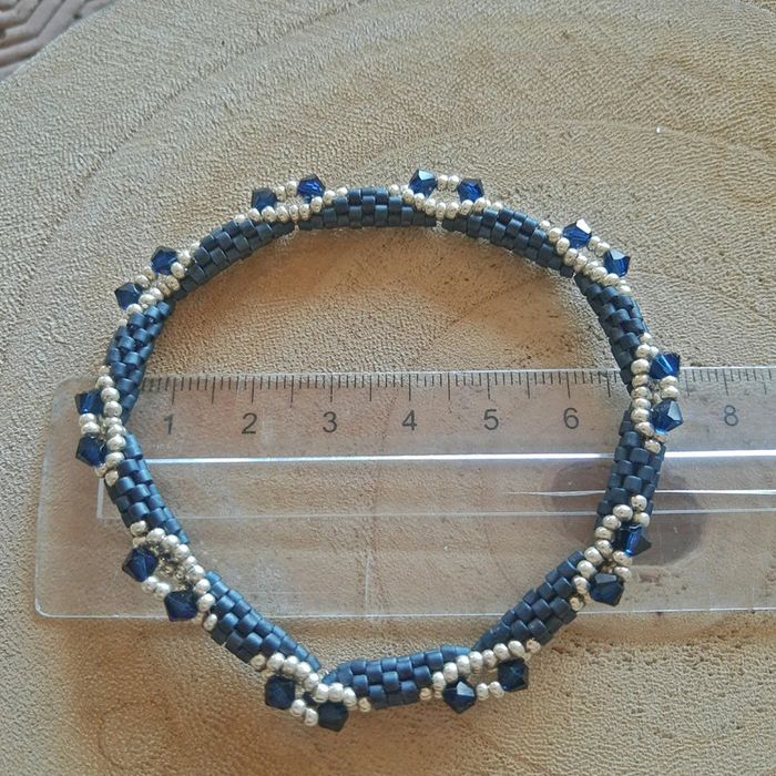 Bracelet perles bleu mat et argentées fait main - photo numéro 7