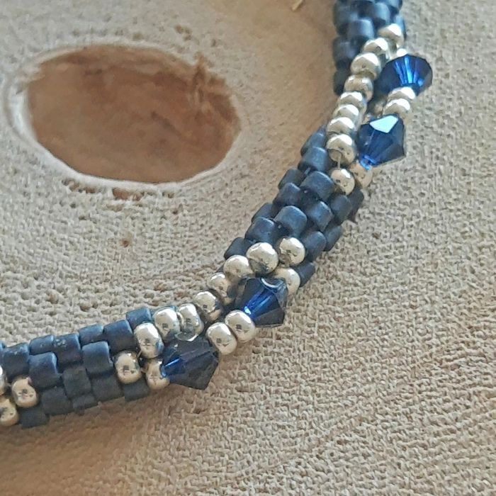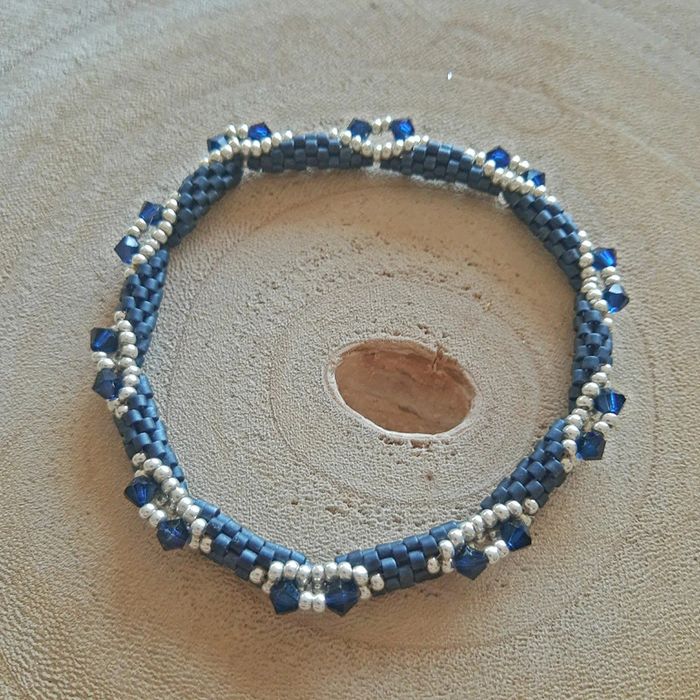 Bracelet perles bleu mat et argentées fait main - photo numéro 1