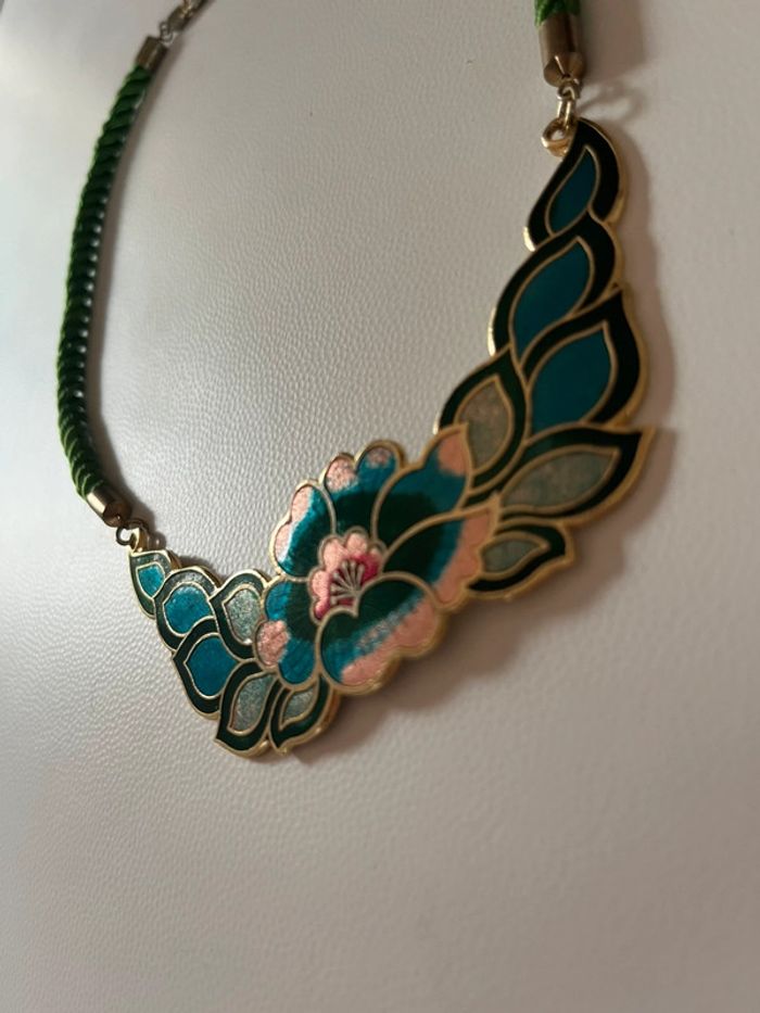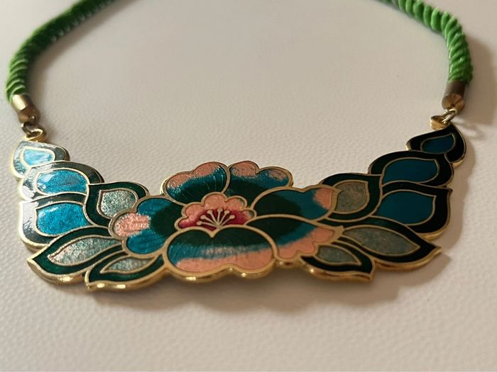 Superbe collier en cloisonné vintage fleur de lotus - photo numéro 1