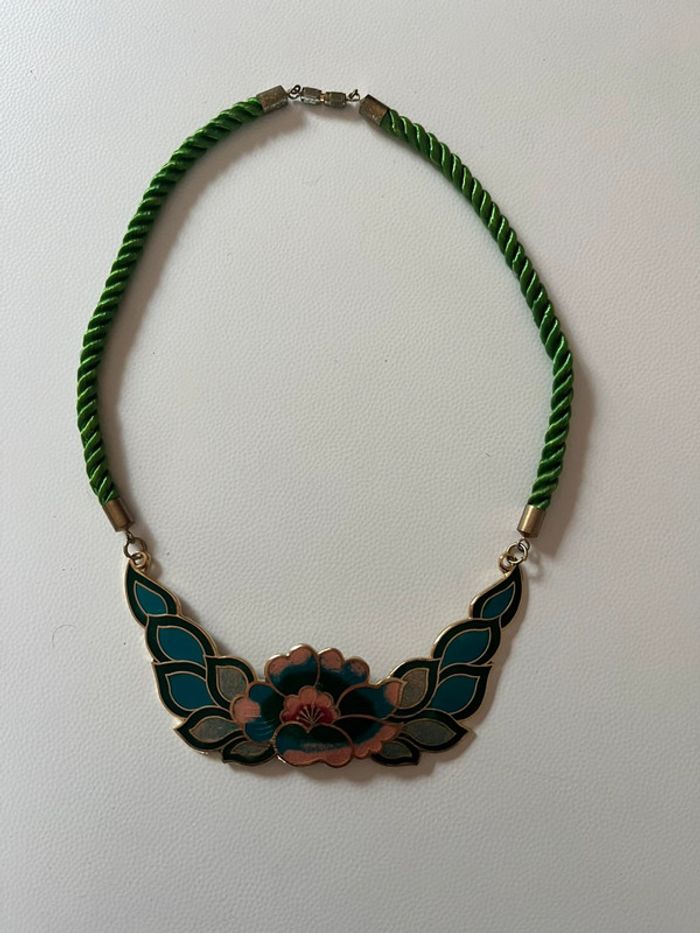 Magnifique collier en cloisonné, vintage puisque je les ai depuis près de 30 ans . Forme fleur de lotus émail vert et rose , sertissage doré. Je n’ai pas porté ce collier il est donc en parfait état mais le dessous du cordon avait un petit défaut d’origine. Voir dernière photo.⚠️ Les boucles d’oreilles pendantes de même motif sont en vente dans mon dressing également. La parure est donc possible. Envoi rapide et soigné 👍 Mes autres bijoux #cloclodalobijoux #collierfleur #collierfleurdelotus #colliercloisonné #lotus #lotusflower #fleurdelotus #bijouxfleurdelotus #bijouxvintage #bijouxvintages #cloisonné #cloisonnévintage #bijouxcloisonnés #colliercloisonnévintage #parure #parurevintage #bouclesdoreillescloisonnées