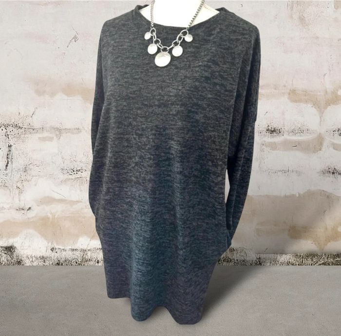 Robe pull  sweat gris chiné très confortable et moderne taille unique jusqu’au 42 - photo numéro 1