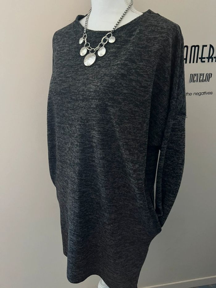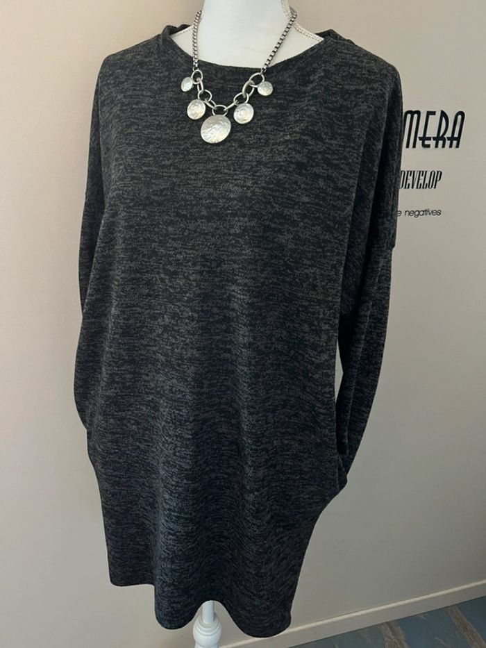 Robe pull sweat gris chiné très confortable et moderne taille unique jusqu’au 42