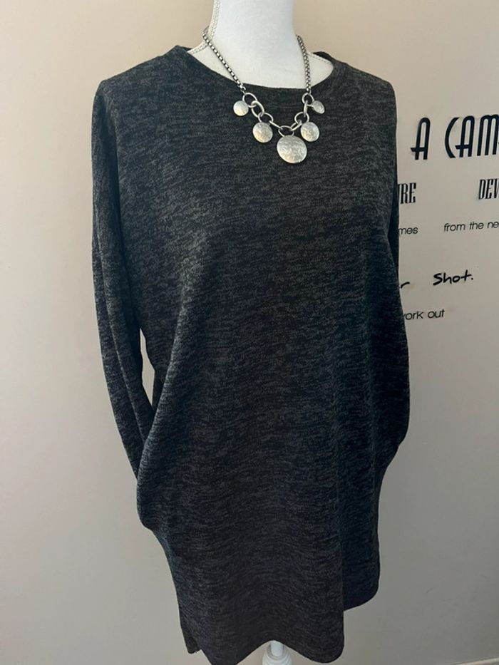Robe pull  sweat gris chiné très confortable et moderne taille unique jusqu’au 42