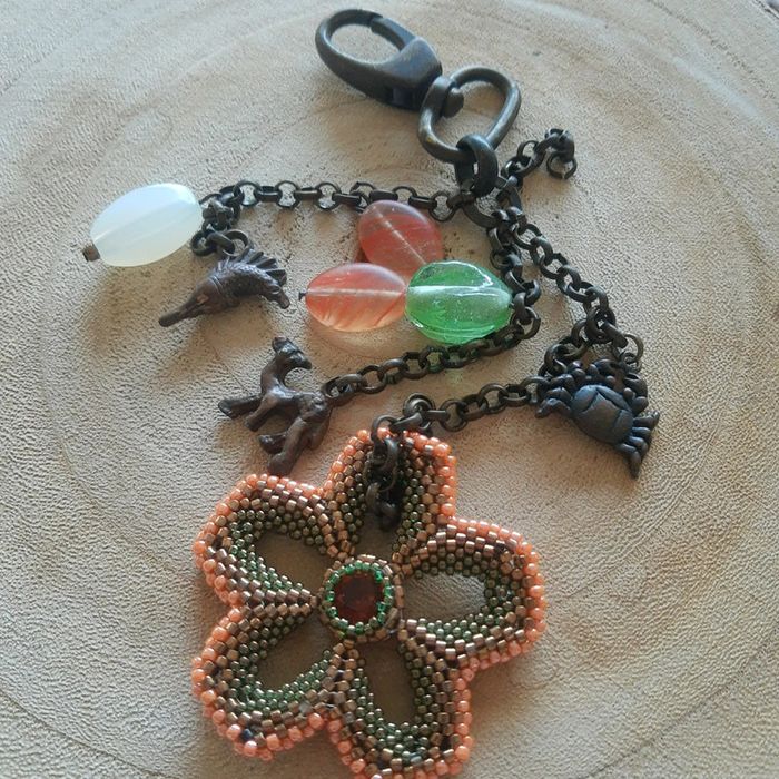 Joli bijoux de sac ou grand porte clef en métal aspect vieillit, perles, pampilles (crabe, hypocampe, chameau..) fleur tissée en perles miocchi. Tons vert et orange corail. Fermeture par mousqueton Dimension en photo Provenance : Boutique Création bijoux Etsy Envoi rapide et soigné. Une jolie idée cadeau 👍 Mes autres bijoux #cloclodalobijoux Mes autres accessoires #cloclodaloaccessoires Pensez à poser vos questions avant achat car je réponds volontiers et je suis très disponible mais je n'accepte pas de retour ensuite sauf erreur de ma part bien sûr ⚠️ #porteclés #porteclefs #porteclesfaitmain #porteclésoriginal #bijouxfantaisie #bijouxdecreateur #bijouxdesac #bijouxdesacs #faitmain #idéecadeau #idéecadeaufemme #idéecadeaugirly #idéecadeaucopine #idéecadeaumaman #ideecadeaumamie #ideecadeauamoureuse #idéecadeauchérie #ideecadeaubijoux #ideecadeauboheme #idéecadeauvintage #ideecadeaufaitmain #idéecadeauaccesoires #idéecadeau #idéecadeaufemme #idéecadeaucopine #idéecadeauutile #cadeauutile #cadeaupratique