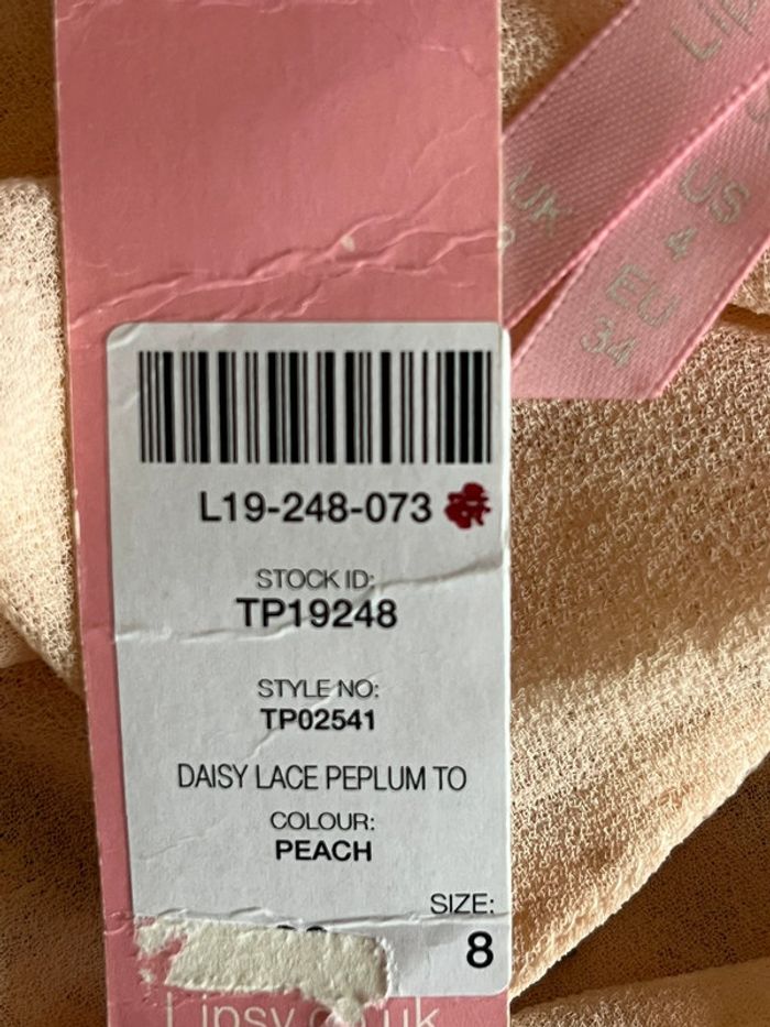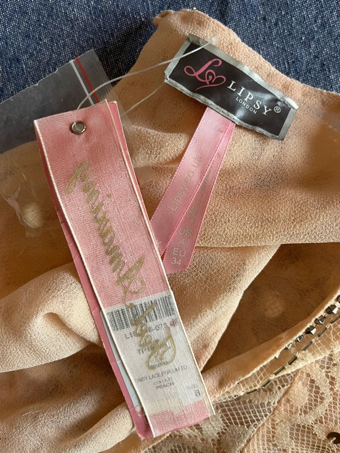 Tunique dentelle pêche et sequins forme péplum neuve avec étiquette Lipsy London Limited - photo numéro 1