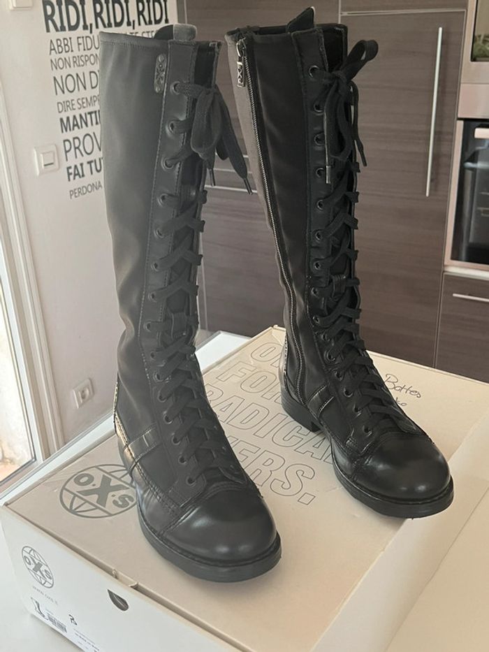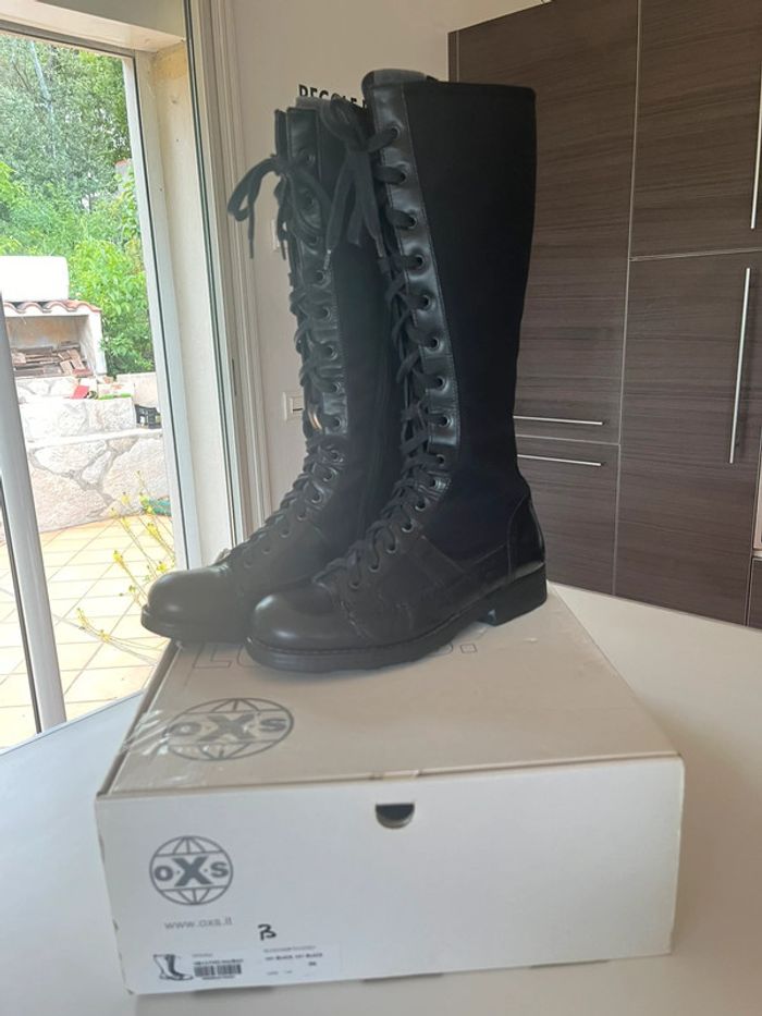 Superbes bottes noires hautes confortables et chaudes . Talon presque plat, antidérapant, idéal pour l’hiver Très peu portées, excellent état Pointure 36 En cuir véritable de qualité Marque italienne OXS Dans leur boite d’origine Une très belle idée cadeau 🎁 Envoi rapide et soigné 👍 Nombreuses autres chaussures dans mon dressing de tout style, chic, mode , vintage, sport ou alternatif. Lot possible. Mes autres chaussures : #cloclodaloshoes #botteshautes #bottesnoires #bottescuirnoir #bottesfourrées #cuiritalien #botteschaudes #botteshiver #bottes36 #bottesplates #bottesantidérapantes #bottescuir #bottesqualité #bottesarmy #stylearmy #bottesoxs #bottesneuves #cuirvéritable #cuiritalien #stivale #uniqlofemme #uniqlo #uniqlostyle #stylealternatif #botteslacées #botteszippées #idéecadeau #bottesneuves #bottesoxs